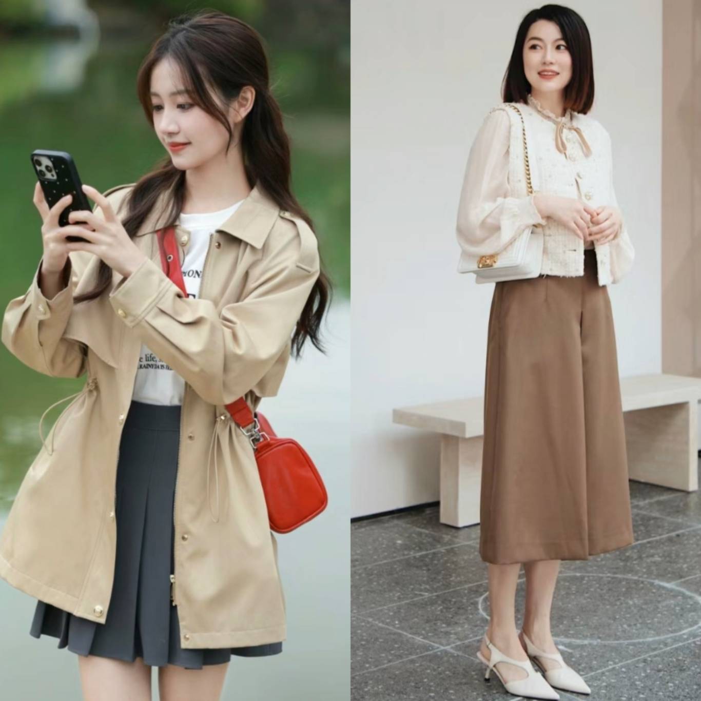 在春夏时节,卡其色的服饰能够轻松打造出温暖而柔和的视觉效果,无论是风衣、裤装还是裙装,都能展现出穿着者的优雅气质。