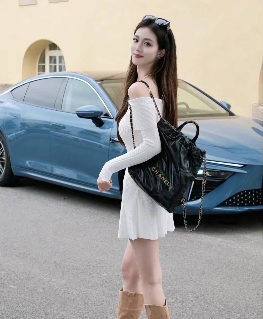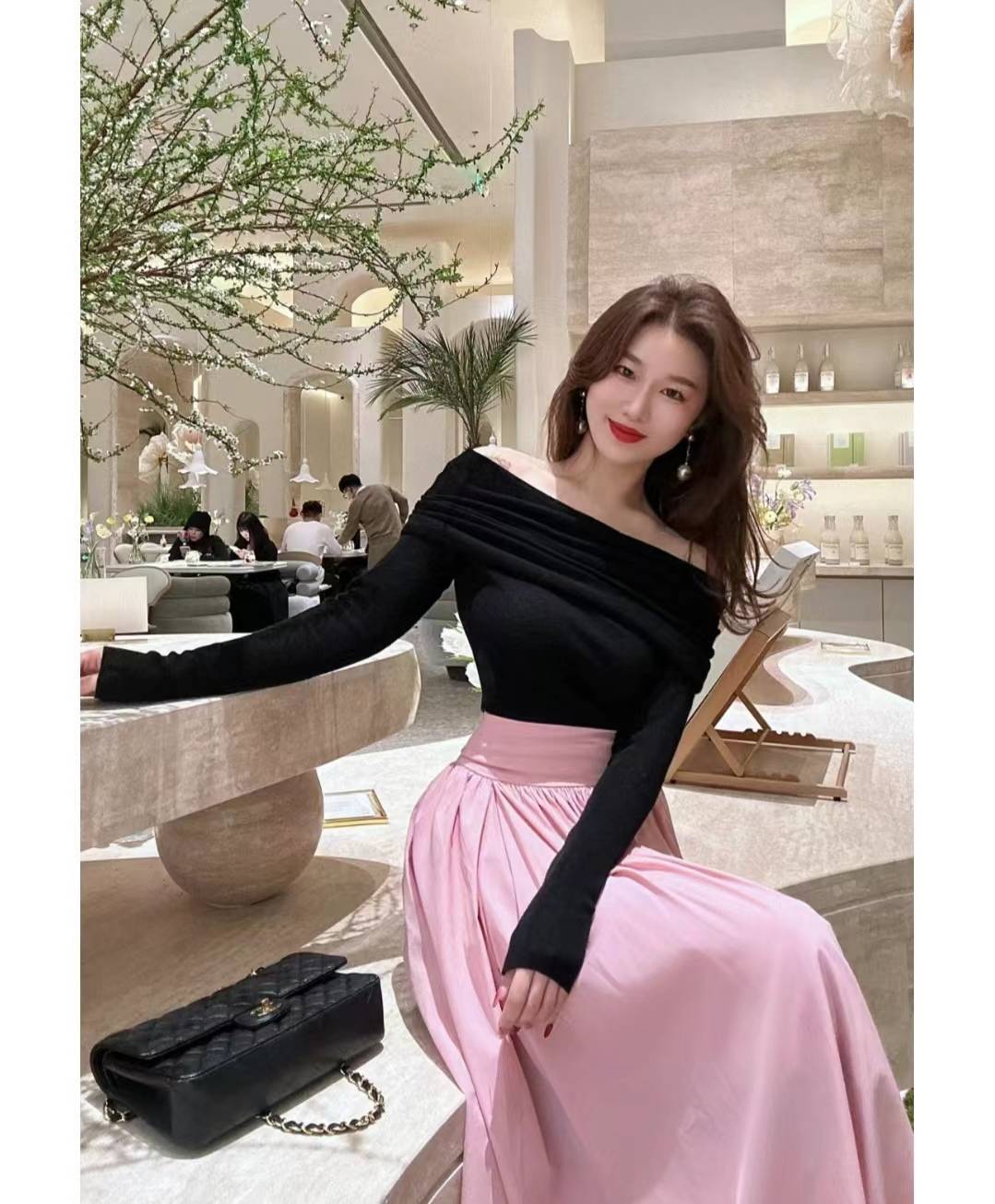 模板六:一字肩上衣+短裙