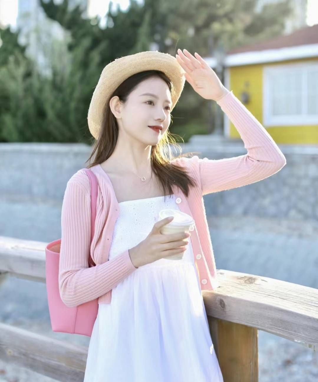 小白裙+粉色针织开衫,是温柔又甜美的搭配方式。粉色针织开衫的柔软质地与小白裙的轻盈飘逸相匹配,非常适合春夏交替的季节。这种搭配方式既能展现出女孩的柔美,又不失时尚感,是约会、逛街等休闲活动的绝佳选择。