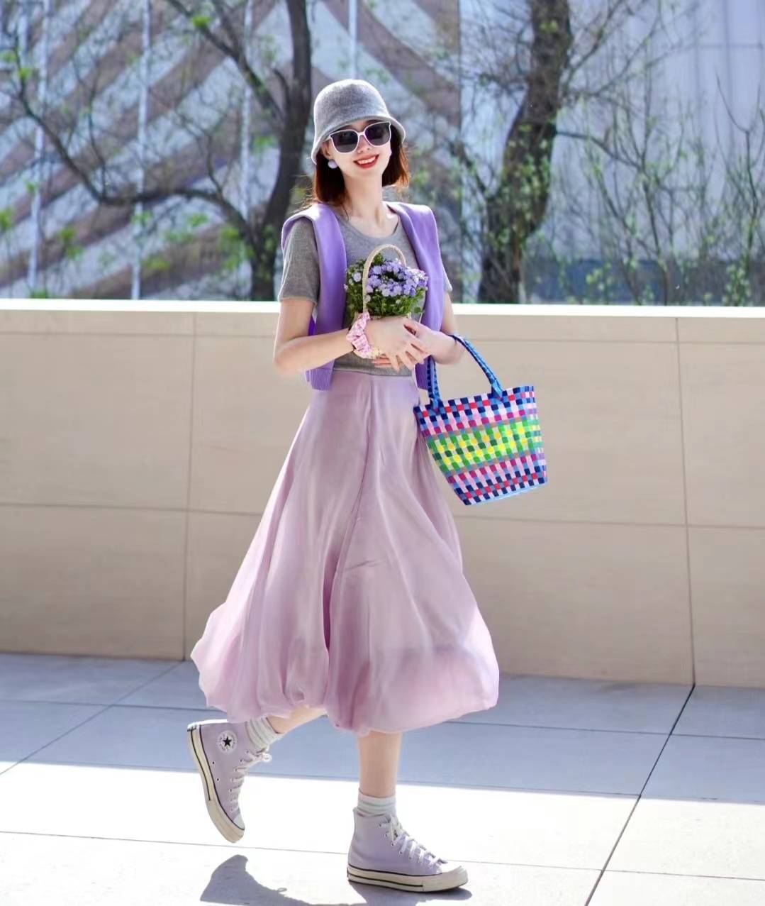 虽然柔和的色彩过渡能彰显温婉气质,但偶尔尝试冷暖对比的配色方案,也能为您的穿搭增添一抹亮色。例如,深蓝色的长裙搭配一件暖色的开衫,或者紫色的连衣裙外罩一件绿色的小外套,都能让你在人群中脱颖而出。